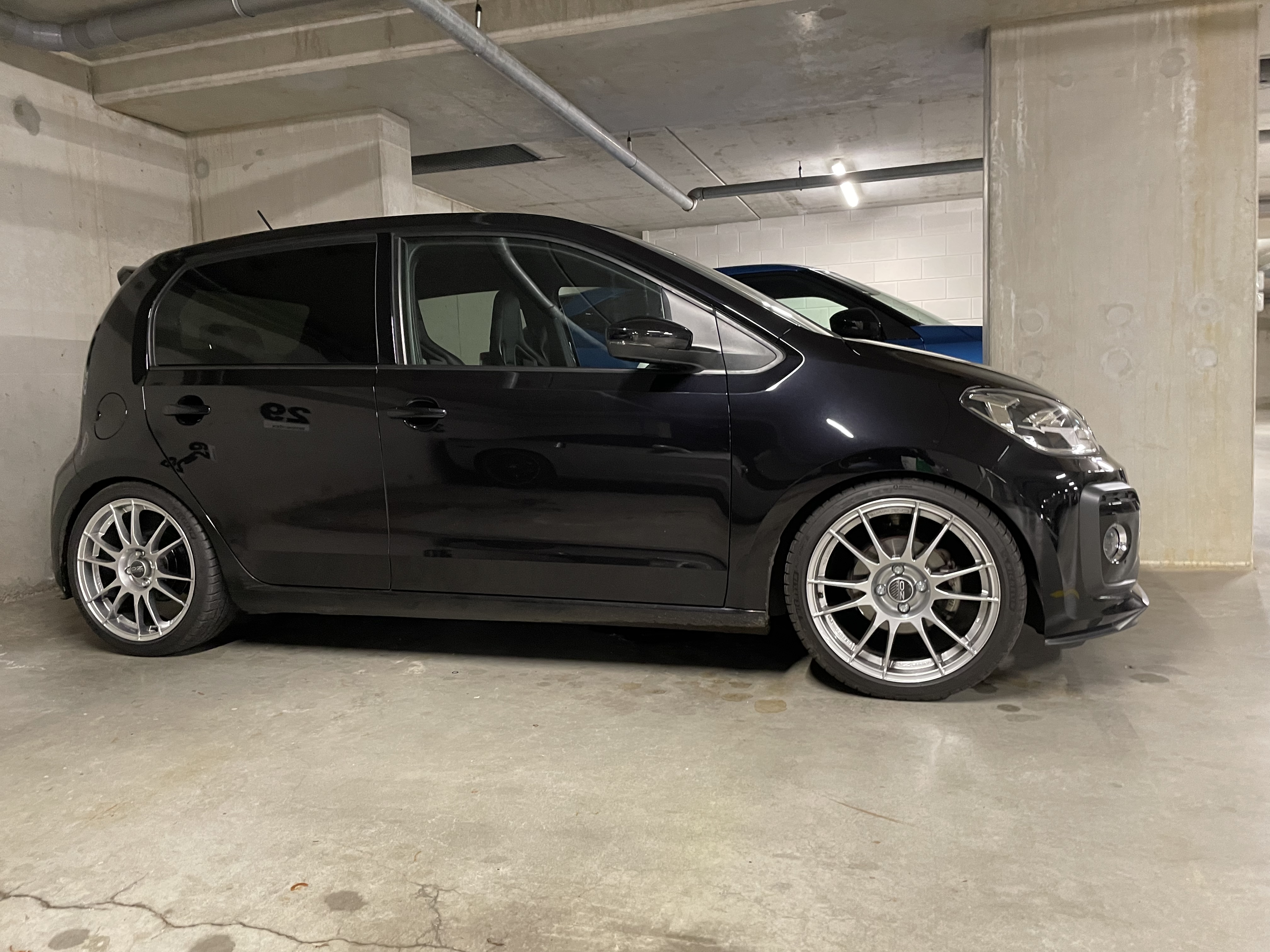 Dat merk je absoluut, je zou denken dat het niet veel uitmaakt maar het scheelt wel degelijk. De vorige eigenaar van de oz velgen rijdt nu weer op originele up gti velgen met goodyear banden en vond het gelijk een stuk stugger. Wel rijden we allebei op schroefsets op de laagste stand.