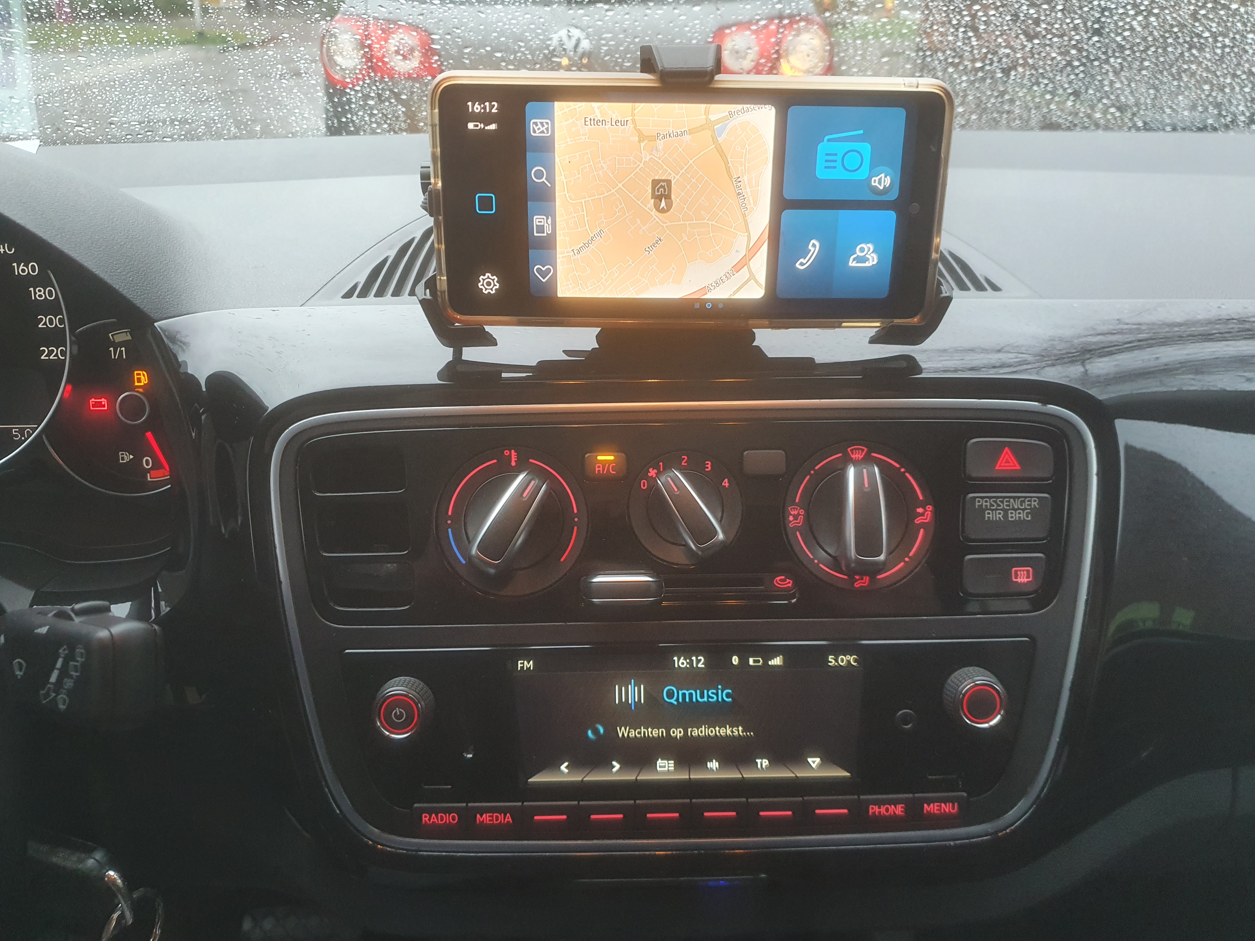 Hier nog even wat foto's van de phone holder die ik geplaatst heb waar nu dus je GSM in moet met de Maps&More van VW er op.