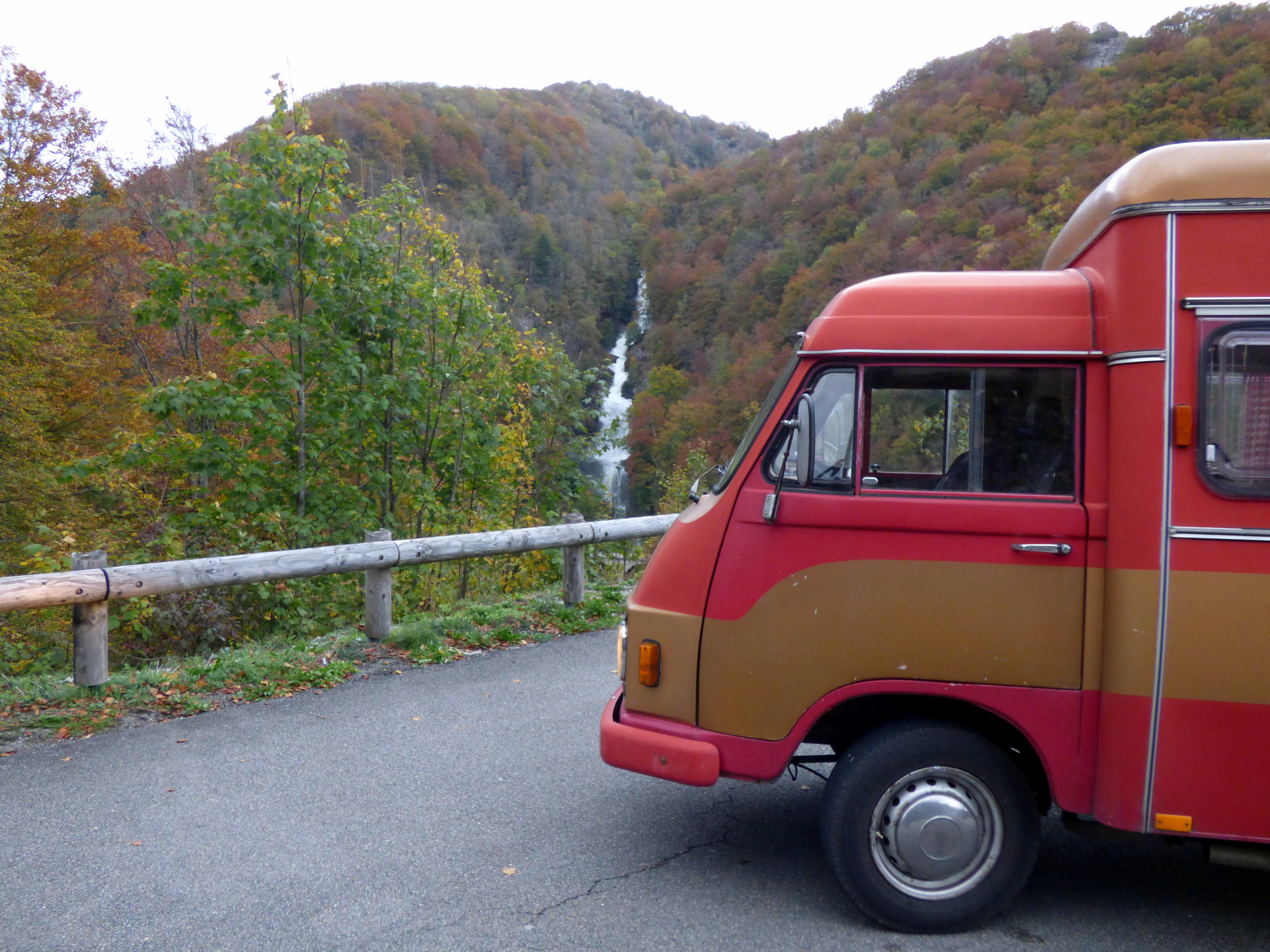 Vanuit het Zwarte Woud zijn we verder naar het zuiden gereden, en net ten noorden van het Zwitserse Basel zijn we de gemoedelijke Franse Elzas ingetrokken. Bij het plaatsje Ferrette vonden we een uitstekende camperplek voor de nacht. Vandaar zijn we verder getrokken, en verruilden de Elzas voor het mooie landschap van de Franse Jura, met ook daar weer alles in een prachtige herfsttooi gehuld. Voor de overnachting hadden we een camperplek in Les Rousses uitgekozen, vooral bij wintersporters erg geliefd.