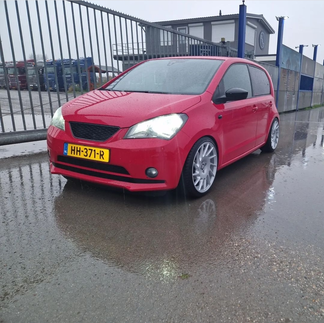 Met de originele velgen van mijn Mii Sport Connect is het design aan beide kanten verschillend. Aan één kant staan de 'spaken' net zo als bij jou nu op de foto te zien is, de andere kant is dus tegengesteld (zie foto's in mijn topic). Maar grappig hoe smaken kunnen verschillen en je er verschillend tegen aan kunt kijken. Ik vind de manier waarop die spaken aan de andere kant dan tegengesteld staan juist mooier. Veel meer of de wielen dan gretig grip op de weg willen hebben, terwijl de andere kant lijkt of het wiel wat doorzakt...
