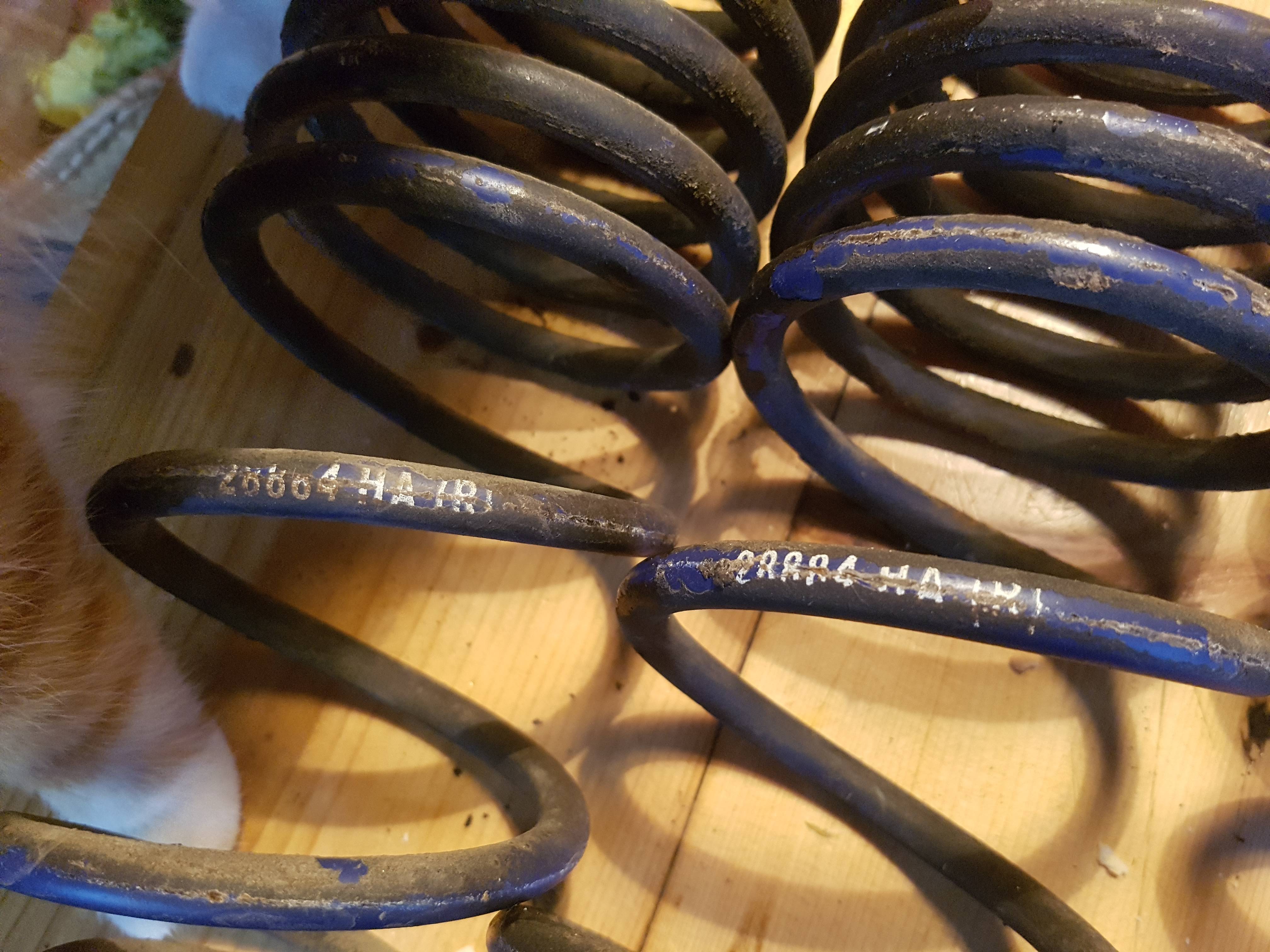 Veren hebben ongeveer 45.000 km onder de auto gezeten. De vorige eigenaar heeft direct na aankoop van de auto (nieuw) de auto verlaagd met dit setje en een Dinitrol (anti roest) behandeling gedaan. Vandaar het zwartje laagje dat te zien is op de foto. Veren zijn verder in prima staat.