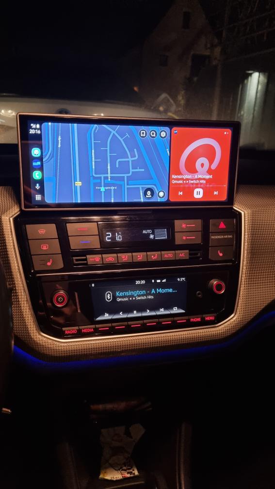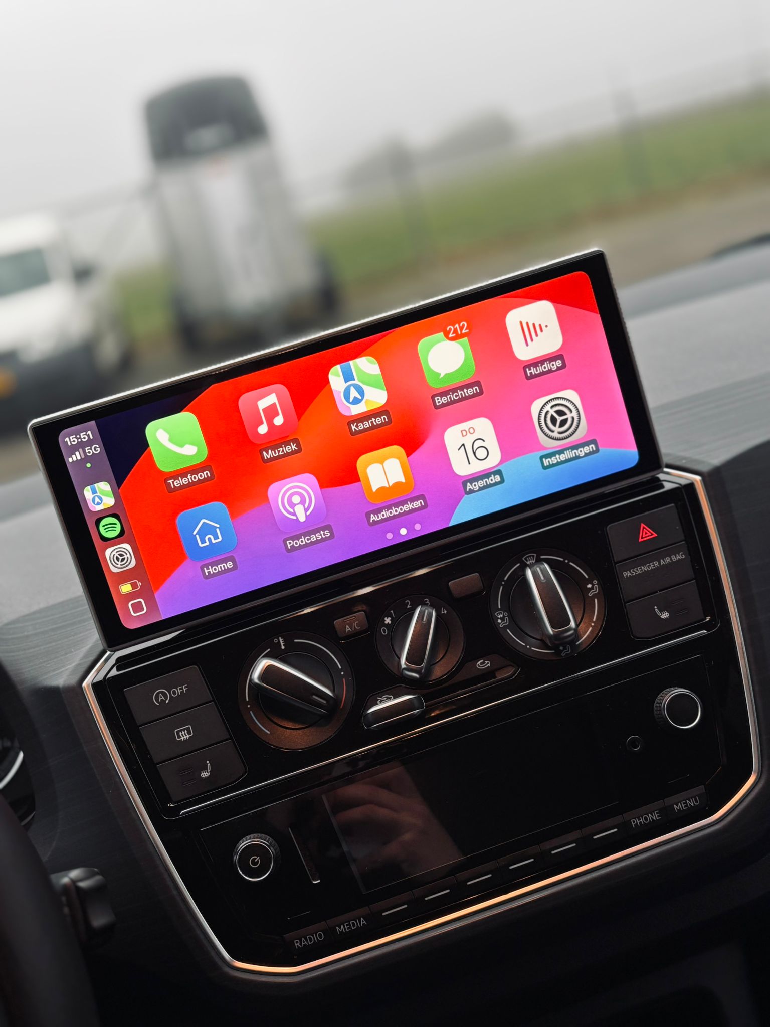 Ik ben nog op zoek naar een carplay systeem dat dit niet heeft. Op YT staat een filmpje van een gast die een carplay scherm gemonteerd heeft onder de radio, dat valt inderdaad minder op maar dan moet je steeds naar beneden kijken. Dat is niet ideaal.